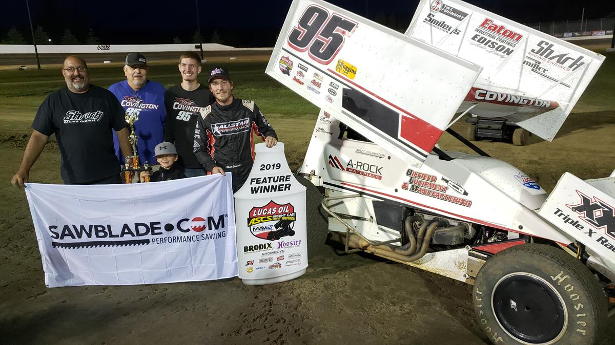 Bryan Hulbert – ELMA, Wash. (June 29, 2019) A preliminary night winner in 2017, Oklahoma’s Matt Covington added the Fred Brownfield Classic championship night to his list of accomplishments on Saturday night with his first Sawblade.com A-Feature victory of the year with the Lucas Oil American Sprint Car Series presented by the MAVTV Motorsports Network.